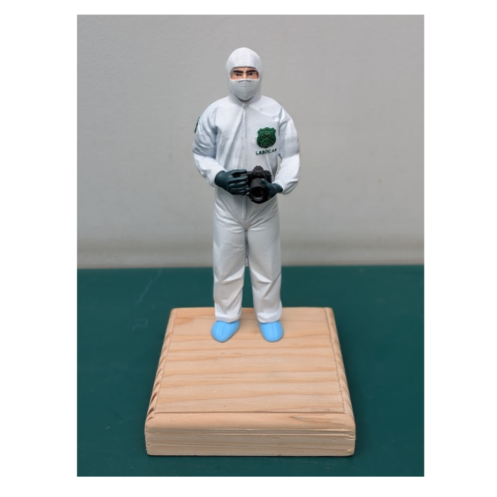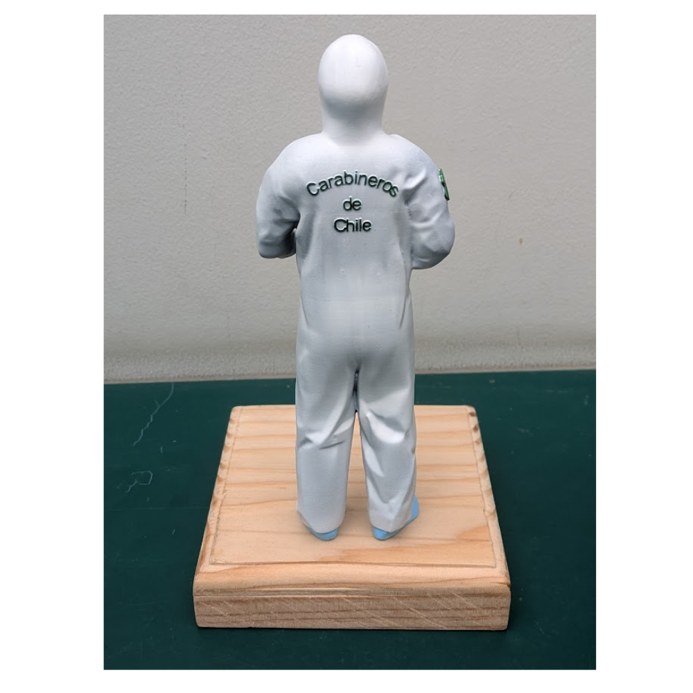 Elegante figura decorativa de un carabinero Labocar, montada sobre base de madera con placa personalizable. Ideal como regalo conmemorativo o decoración institucional.