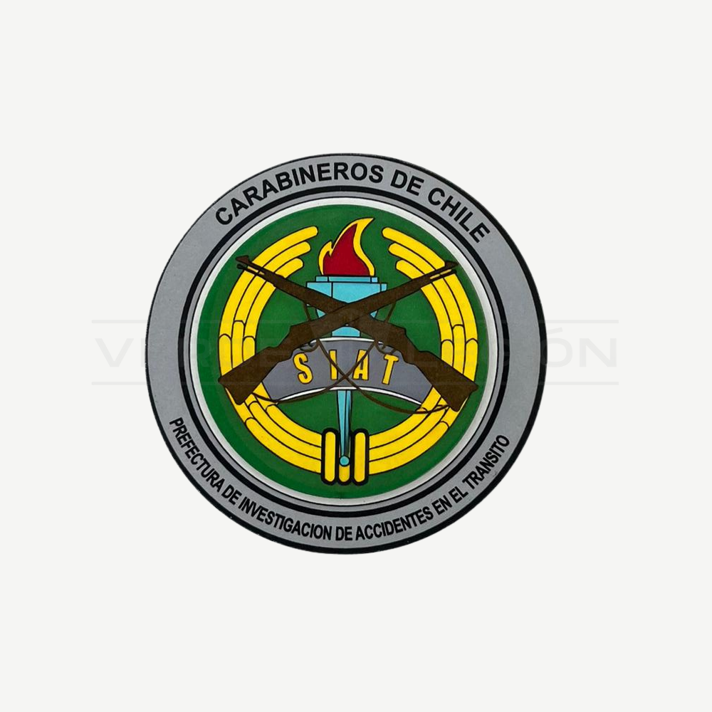 Imán de madera con el emblema de la SIAT (Sección de Investigación de Accidentes de Tránsito) de Carabineros de Chile, unidad especializada en el análisis e investigación de siniestros viales. Un diseño representativo del profesionalismo y compromiso con la seguridad vial.